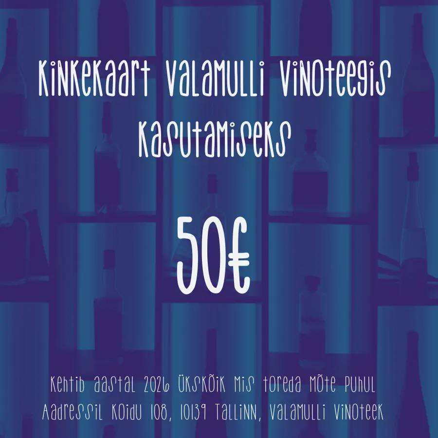 Kinkekaart kehtib Valamulli vinoteegis (Koidu 108, Uus Maailm, Tallinn) pakutavatele toodetele ja toimuvatele sündmustele.